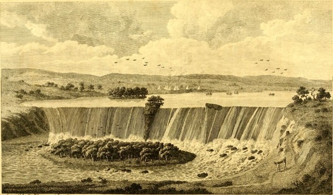 Měl jsem to štěstí, že jsem potkal mladého prince z kmene Winnebago, který byl na diplomatické misi k Dakotům. Když jsem mu prozradil, že se chystám k vodopádům, nabídl mi doprovod. Byl na mne zvědavý, jelikož o mně slyšel od některých svých náčelníků. Nechal na místě svou rodinu, protože indiáni nikdy necestují bez svých rodin a přidal se ke mně. I já zde nechal své lidi a šel toliko s jedním Kanaďanem. Vydali jsme k tomuto slavnému místu a hluk vodopádu jsme jasně slyšeli ze vzdálenosti pětadvacet kilometrů. Byl jsem velmi překvapen a nadšen, když jsem se přiblížil k tomuto úžasnému dílu přírody.