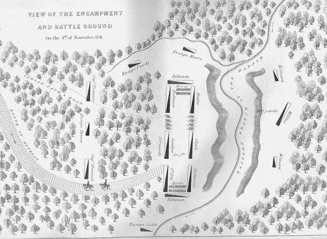 Třetího listopadu armáda zastavila na rozbahněném břehu horního toku Wabashe asi šedesát kilometrů severně od Fort Jeffersonu a pouhých pět kilometrů od hranic Ohia s Indianou. Vojáci byli prochladlí, hladoví a vyčerpáni. St. Clair se rozhodl zřídit tábor a počkat na zásoby. Se stavbou pevnosti chtěl počkat do dalšího dne, aby poskytl mužům alespoň trochu odpočinku. Neměl ovšem tušení, že necelý kilometr severně se připravují do bitvy indiáni. Zatímco vojáci stavěli stany, rozdělávali ohně a vařili si skrovné jídlo, nařídil St. Clair stovce milicionářů a jednadvaceti Rangerům, aby půl kilometru před táborem zřídili předsunuté stanoviště.