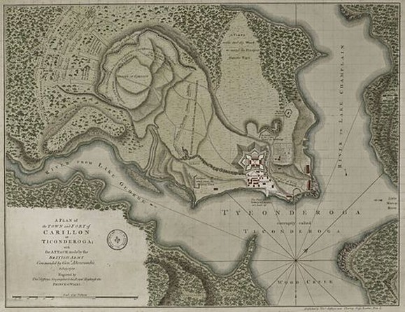 Fort Carillon se nachází na jižním konci úzkého pruhu země mezi jezerem Champlain a ústím jezera George. Kilometr severně od pevnosti se přes poloostrov táhne malý hřeben. Když jsme se dívali dolů z kopce, viděli jsme Francouze tvrdě pracovat na silném opevnění z klád, které měli téměř hotové. Na obou koncích byly těžko překonatelné bažiny. Opevnění se klikatilo podél hřebene tak, aby umožnilo Francouzům střílet křížovou palbou a bylo příliš vysoké na to, aby se dalo přelézt.